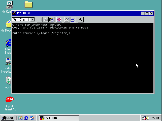 [22:55:14] <IRC_bridge> <Byte98> Но я помню, что на первых порах для Windows 98 был только один консольный клиент.