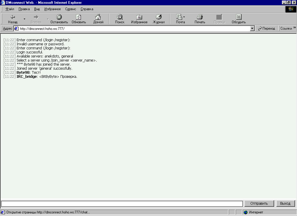 [00:10:11] <IRC_bridge> <BitByByte> Перезапустил сервер веб-клиента.